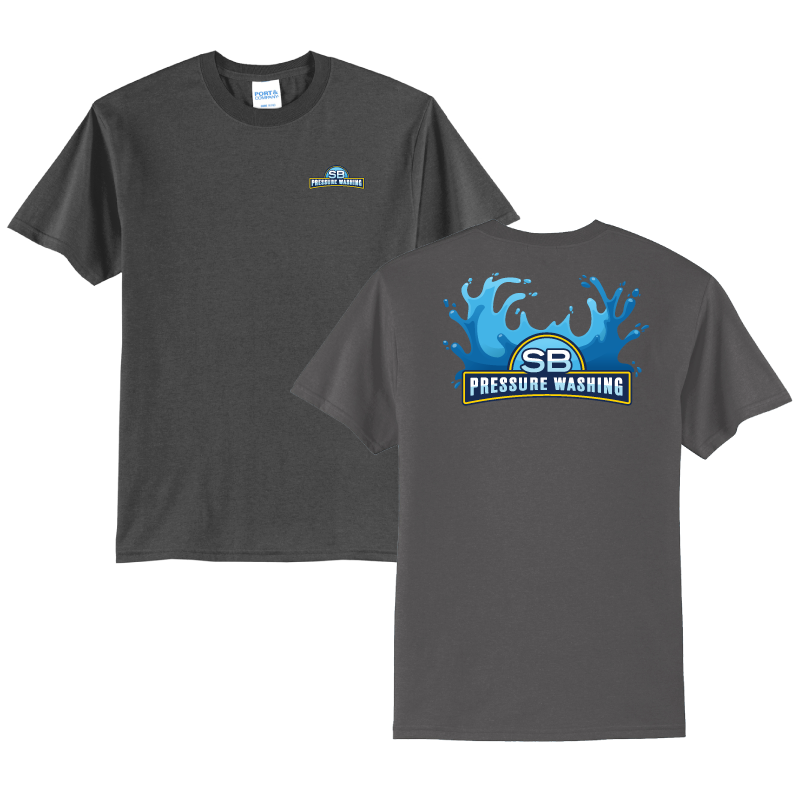 Introducing Spencer's choice for all day cleaning, the SB Pressure Washing Tee! Made from a soft and durable cotton-polyester blend, this unisex tee is not only comfortable but also eco-friendly with up to 5% recycled polyester from plastic bottles. Plus, the tear away tag adds extra comfort.